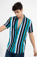 COMBRAIDED Men Striped Casual Blue Shirt