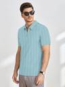 COMBRAIDED Self Design Men Polo Neck Light Blue T-Shirt