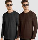 #A stylish for long-sleeve shirt designed for a modern, masculine look.#Slim-fit silhouette enhances the physique while maintaining comfort.#Features a subtle textured vertical pattern for added depth and style.#Ideal for casual outings, streetwear looks, or layering in cooler seasons.#A versatile men’s top that pairs well with jeans, joggers, or tailored pants.#Clean crew neck design adds to the minimalist, contemporary feel.