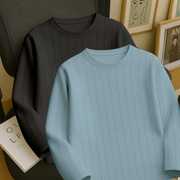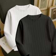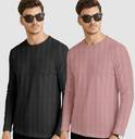 #A stylish for long-sleeve shirt designed for a modern, masculine look.#Slim-fit silhouette enhances the physique while maintaining comfort.#Features a subtle textured vertical pattern for added depth and style.#Ideal for casual outings, streetwear looks, or layering in cooler seasons.#A versatile men’s top that pairs well with jeans, joggers, or tailored pants.#Clean crew neck design adds to the minimalist, contemporary feel.