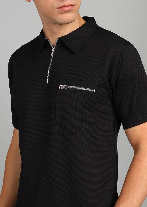 COMBRAIDED Solid Men Polo Neck White T-Shirt