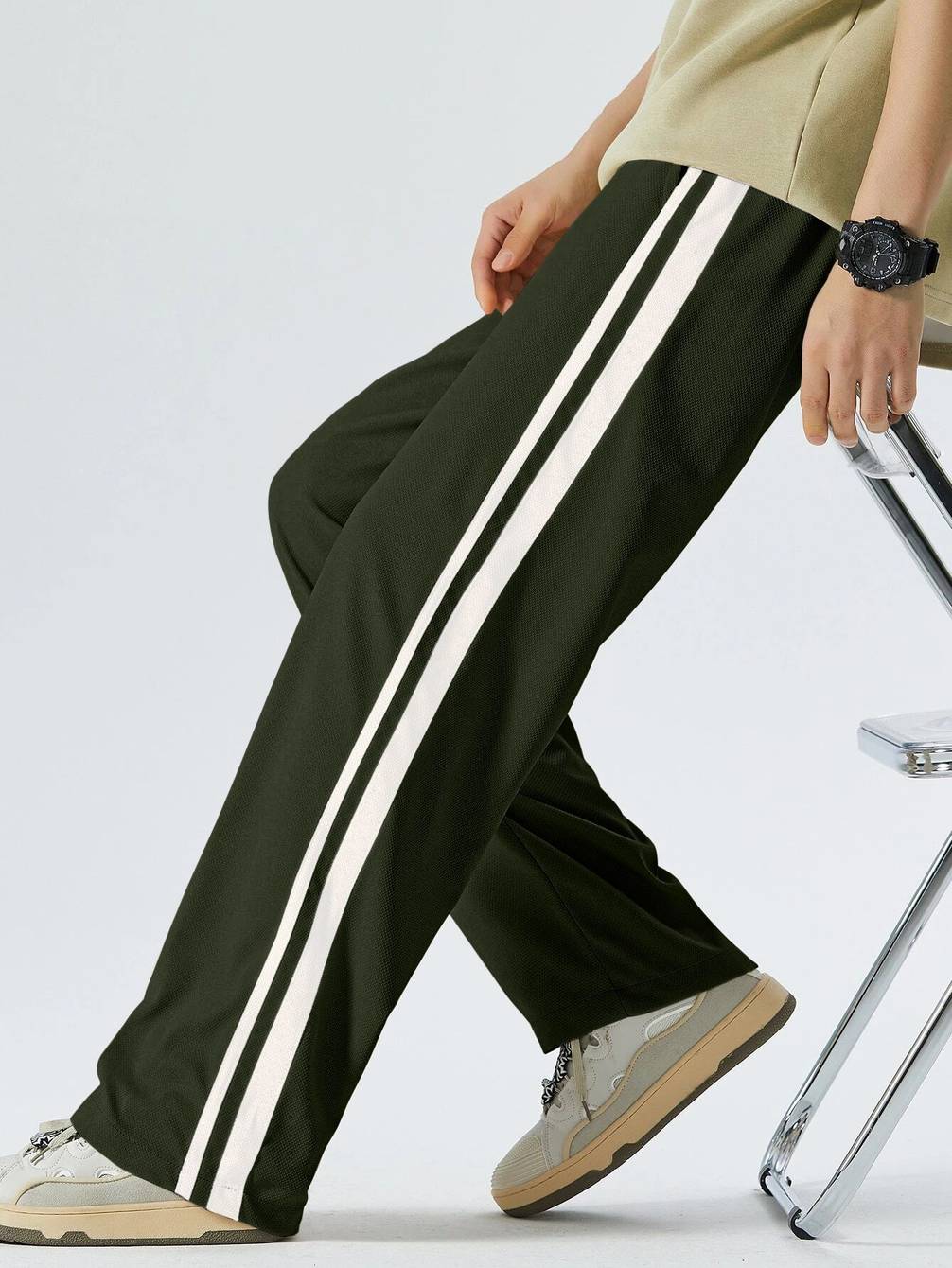 COMBRAIDED Solid, Striped Men Green, White Track Pants