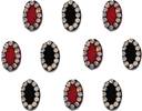 Comet Busters Black and Maroon Oval Bindi With Silver Stone Border (10mm) (BIN1994) Forehead Multicolor Bindis (Basic with diamond)