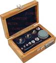 Analytical Weight Box - Brass Chrome Plated Calibrated Weights in Wooden Box. Includes: One Weight of 200gm, 100 Gm, 50 Gm, 10 Gm, 5 Gm, 1 Gm and Two Weights of 20gm and 2gm. Fractional Weight - 1 Mg - 500 Mg With 10mg Rider, Brass Forcep.