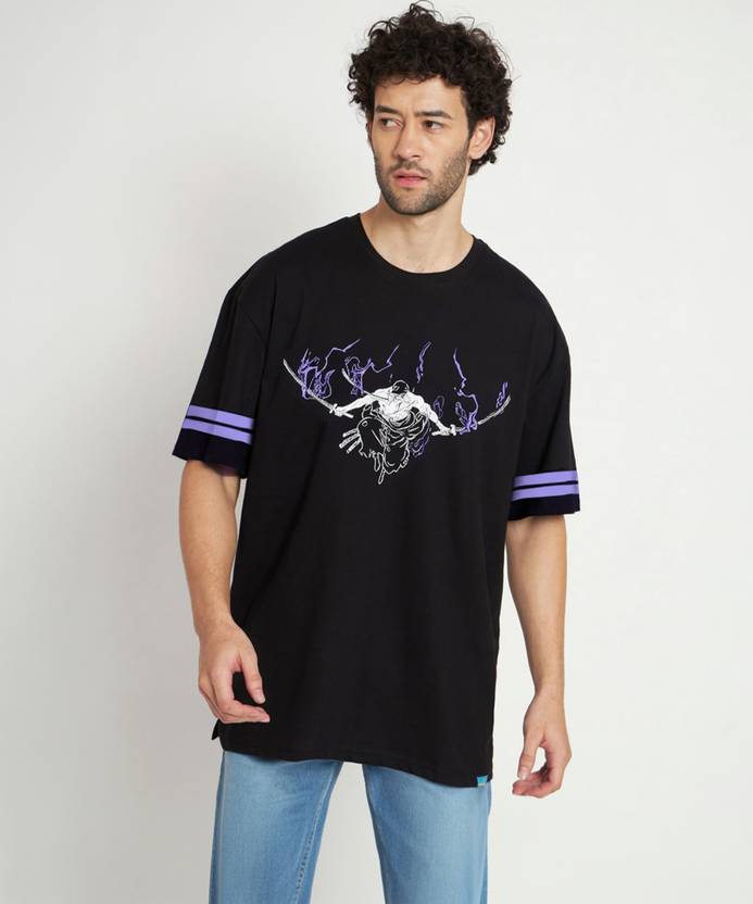 One Piece Anime King of Hell Oversized Anime Jersey Men Printed Crew Neck Pure Cotton Black T-Shirt