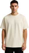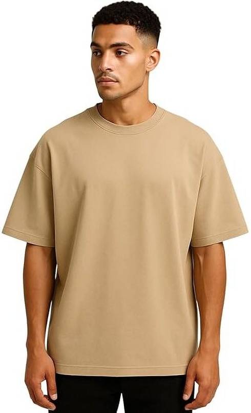 Men Solid Round Neck Pure Cotton Beige T-Shirt