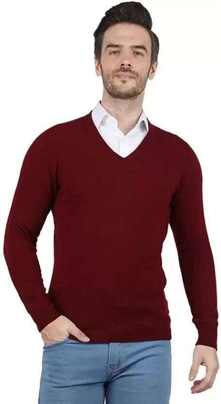 COMPANY ME Solid V Neck Casual Men Maroon Sweater