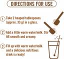 Take powder in a glass. Add little warm milk or water. Stir till smooth and creamy. Fill up with remaining milk or water.