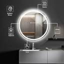 The high-quality copper-free silver round mirror provides you with the best-using experience with soft diffuse light and elegant modern design. It gathered a sensitive touch switch, memory function, defogging function, and adjustable color temperature. Helps you start a high-quality domestic life.