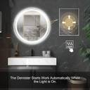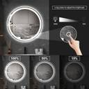 Round 36 Inch Bathroom Mirror, Wall Mounted, Dimmable, Anti-Fog, Led Lighted