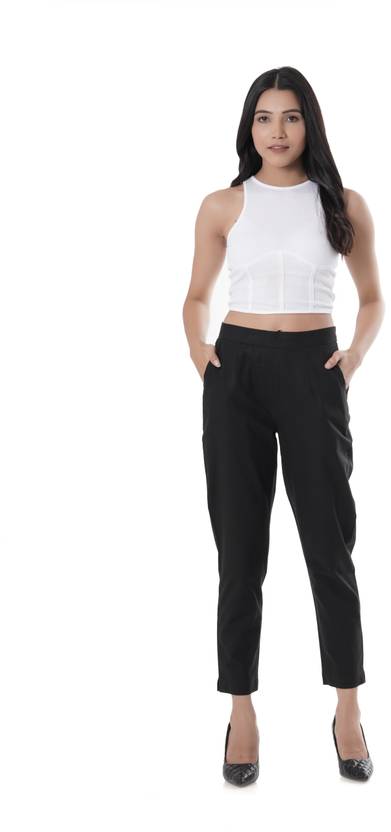 Comzy Women Regular Fit Black Cotton Blend Trousers