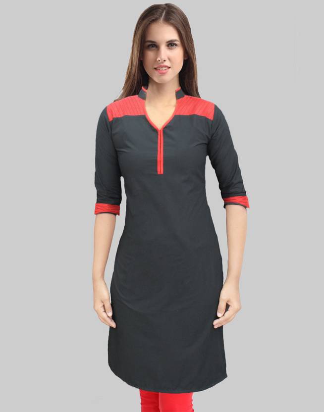 Confession 9 Women Solid Cotton Blend A-line Kurta (Black)