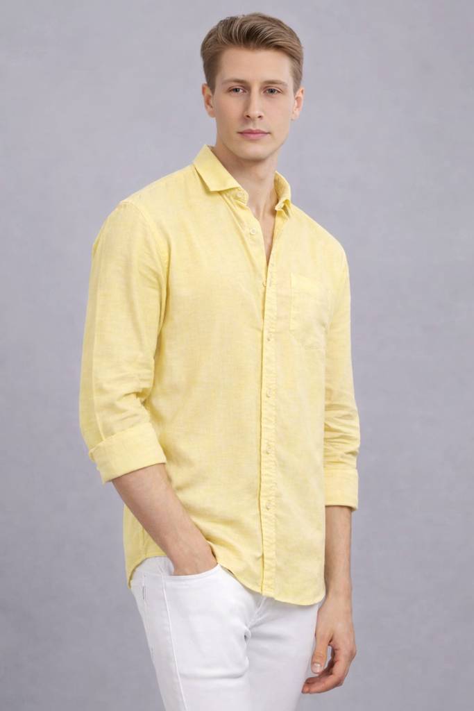 Congo Fit Men Solid Casual Yellow Shirt