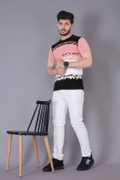 CONJEX Typography, Printed Men Round Neck Reversible Pink T-Shirt