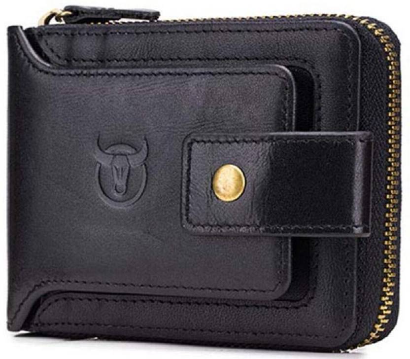 CONTACTS Men Black Genuine Leather Wallet (12 Card Slots)