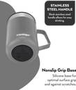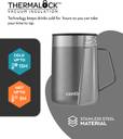 Brew at home to enjoy a fresh taste and keep it at hand in your new favourite mug. The Streeterville Desk Mug, blends elegant design with a comfort handle and a secure, splash-proof lid. It is engineered with THERMALOCK (double walled vacuum insulated 18/8 stainless steel) to keep drinks hot for 5 hours and cold for up to 15 hours. So, it is ready for your favourite beverage - and fits neatly beneath most coffee makers for comfortable filling. When drinking, you'll love the non-slip grip base, which won't scratch the desk. It is BPA-free and fully dishwasher safe. Perfect for gifting or treating yourself, it is everyone's new favourite mug.