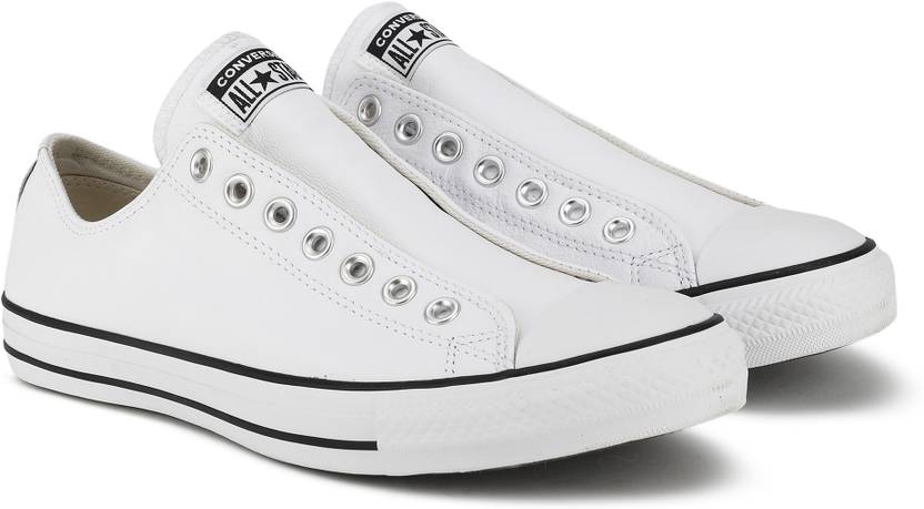 Converse Basic Leather Chuck Taylor All Star Slip Slip On Sneakers For Men (White , 10)