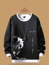A stylish men's two-piece tracksuit, perfect for a casual look or athletic wear. The set includes a crewneck sweatshirt with a unique black and graphic design and matching black joggers featuring a subtle "NB" logo and reflective stripes on the calves. The entire outfit is presented hanging against a solid brown background.
