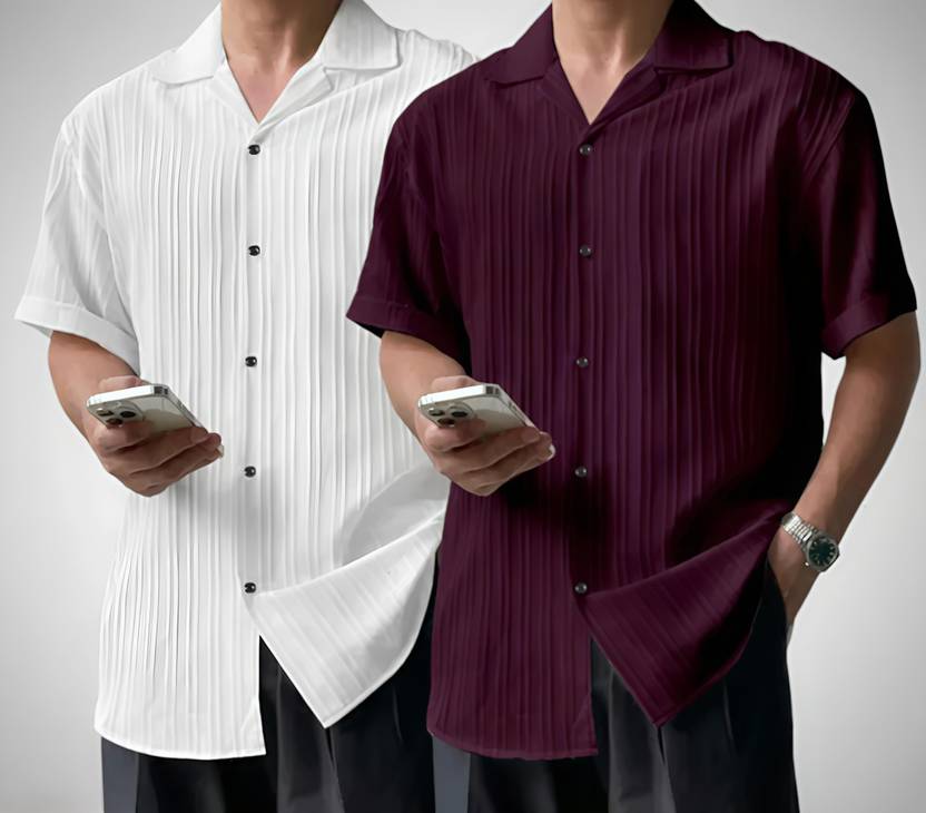 VRLOOKS Men Self Design Casual White, Maroon Shirt (Pack of 2)