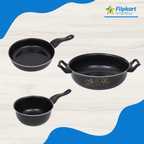 cookpro Non-Stick Cookware Set of 3 Pcs - Kadhai, Fry Pan & Sauce Pan- Induction Bottom Non-Stick Coated Cookware Set (Cast Iron, PTFE (Non-stick), 3 - Piece)