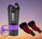 | Other Features | - 2 Extra Compartment, Shaker Steel Blender Mixer Ball, For protein shaker, protein shaker bottle for gym, for men and women, PERFECT FOR A RANGE OF EXERCISES : Bench Press, Barbell Snatch, Kettle Bell Swings, Muscle Ups, Dead Lifts, Squats, Pushups etc. Stay Protected While You Lift Heavy!, These High Performance Straps Provide Wrist Support And Stability For Weightlifters, Crossfit, MMA, Power lifting, Push Ups, Planks Strength Training., Provide Good Support, Are More Comfortable & Allows Wrist Flexibility, High Grip, Low Compression, Washable And Breathable, DOCTOR RECOMMENDED: Wrist Support Wraps Are Highly Recommended To Use During Strenuous Activity., Packages : 1X Pair Wrist Support : 1 SHAKER BOTTLE 500ML