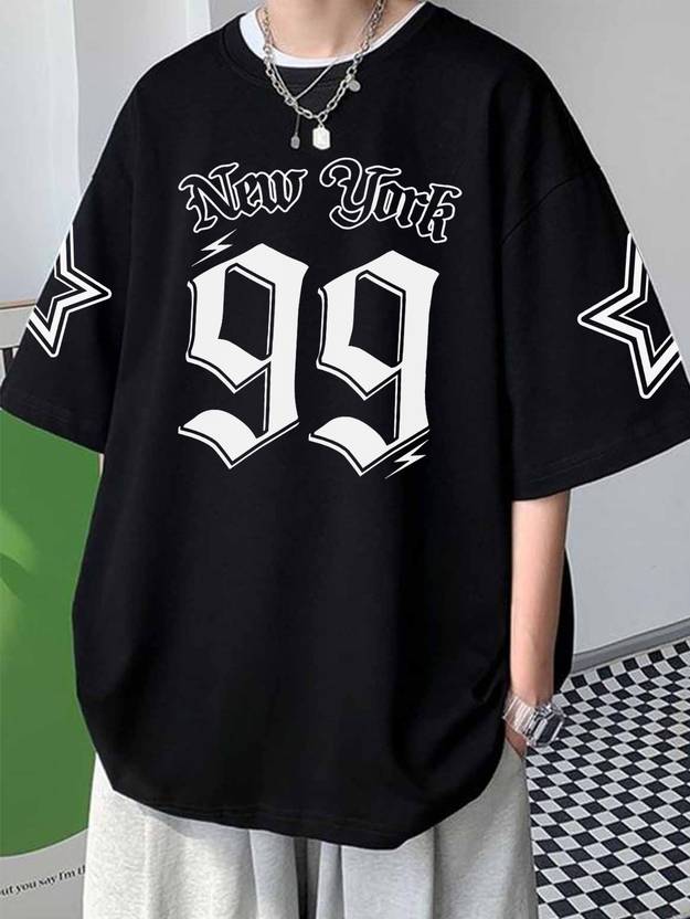 Men Printed Round Neck Cotton Blend Black T-Shirt