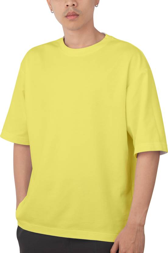 Cool Plus Oversized Men Printed Round Neck Pure Cotton Yellow T-Shirt