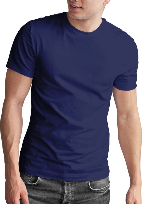 Cool Plus Solid Men Round Neck Navy Blue T-Shirt