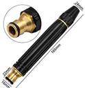 Garden Hose Nozzle Kit with 3Pcs PVC Hose Quick Connector, Copper Plated Alloy Nozzle Water Spray Gun Adjustable Water Pressure Hose Nozzles for Car Bike Wash Use for Multipurpose (1) THREE ADAPTER AND ONE WATEERING NOZZLE SPRAY: Including one long alloy spray nozzle, one quick couplings, one 3/4 inch 2 in 1 round mixer tap connector. (2) PREMIUM DURABILITY: The long nozzle is made of premium alloy material, sturdy and durable to use, rust resistance, durable to use. (3) 360 ° ROTATABLE NOZZLE WITH :The nozzle overall length is 16.7cm.The long straight nozzle is with rotatable spout allowing you to take care of all direction watering ,more convenient to use. (4) THREE SPRAY MODE SWITCHABLE: Rotate the nozzle to switch modes, equipping with three different modes to meet more needs. Spraying modes, showering mode, jetting mode, the longest jetting range can be up to 8m around. (5) WIDE APPLICATION: The adapters are made of PVC material, wear resistance, durable to use. Can work with most standard faucet,thread,pipe. Widely used in horticulture irrigation, balcony gardening, pet shower, cleaning windows, and other outdoor cleaning. Product details: ?Type: Sprayers. ?Sprayer Type: Pump. ?Metal Type: Aluminum, Main material: Aluminum. ?Color: Direct Jet Water Gun. ?Feature: Variable Flow Controls, Variable Spray Patterns, Soft… ?Usage: Garden, Wash the car, flowers, floor, wall.