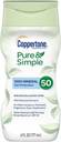 Protect even the most sensitive skin with Coppertone Pure & Simple SPF 50 Sunscreen Lotion. This gentle, dermatologically tested lotion will not clog pores and protects your skin during any outdoor activity. The hypoallergenic formulation, made with naturally sourced Zinc Oxide plus 100% natural botanicals (Tea Leaf, Sea Kelp and Lotus extracts), provides broad spectrum UVA/UVB protection. Coppertone Pure & Simple is free from PABA, phthalates, fragrances, sulphates, parabens, dyes, alcohol and oxybenzone. Enjoy the peace of mind of naturaly sourced, gentle protection, even against even strong sun. The bottle contains 6 fl oz SPF 50 sunscreen lotion. Use and reapply as directed. SPF 50 hypoallergenic sunscreen lotion for sensitive skinGentle, dermatologically tested, naturally sourced zinc oxide lotion plus 100% natural botanicals (tea leaf, sea kelp, and lotus extracts)Free from PABA, phthalates, fragrances, sulphates, parabens, dyes, alcohol and oxybenzoneThis pack contains one (1) 6 fl oz sunscreen lotion