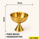 Illuminate your home temple and festive celebrations with this Premium Brass Akhand Jyoti Diya. Handcrafted by skilled artisans, this diya is made of 100% pure brass, offering long-lasting durability and a timeless golden shine. Its wide, sturdy base ensures stability while lighting, making it ideal for daily puja, Diwali, Navratri, and other spiritual occasions. Compact yet elegant (9 cm width ร 8 cm height), it fits perfectly in any mandir setup.