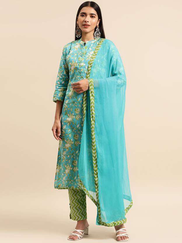 Solid Kurta, Trouser/Pant & Dupatta Set
