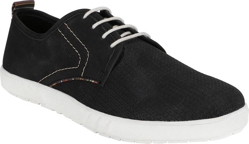 Make the roads your private ramp by wearing this pair of black and white colored sneakers that is brought from the latest collection of Core'. These are long lasting with lace up closure that keeps them from slipping off. They are professionally crafted from high quality PU synthetic with TPR soles. With attractive design, these will go with any casual outfit. Core' is a very reliable brand and renowned for making superior quality shoes for men.