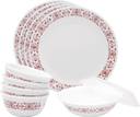CORELLE Pack of 10 Glass Dinner set Red Trellies 10Pcs Set Dinner Set (Multicolor, Microwave Safe)