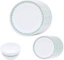 CORELLE Pack of 14 Glass Spring Blossom Mint Dinner Set-14 Pcs|For Family of 6|Microwave &Dishwasher Safe Dinner Set (Multicolor, Microwave Safe)