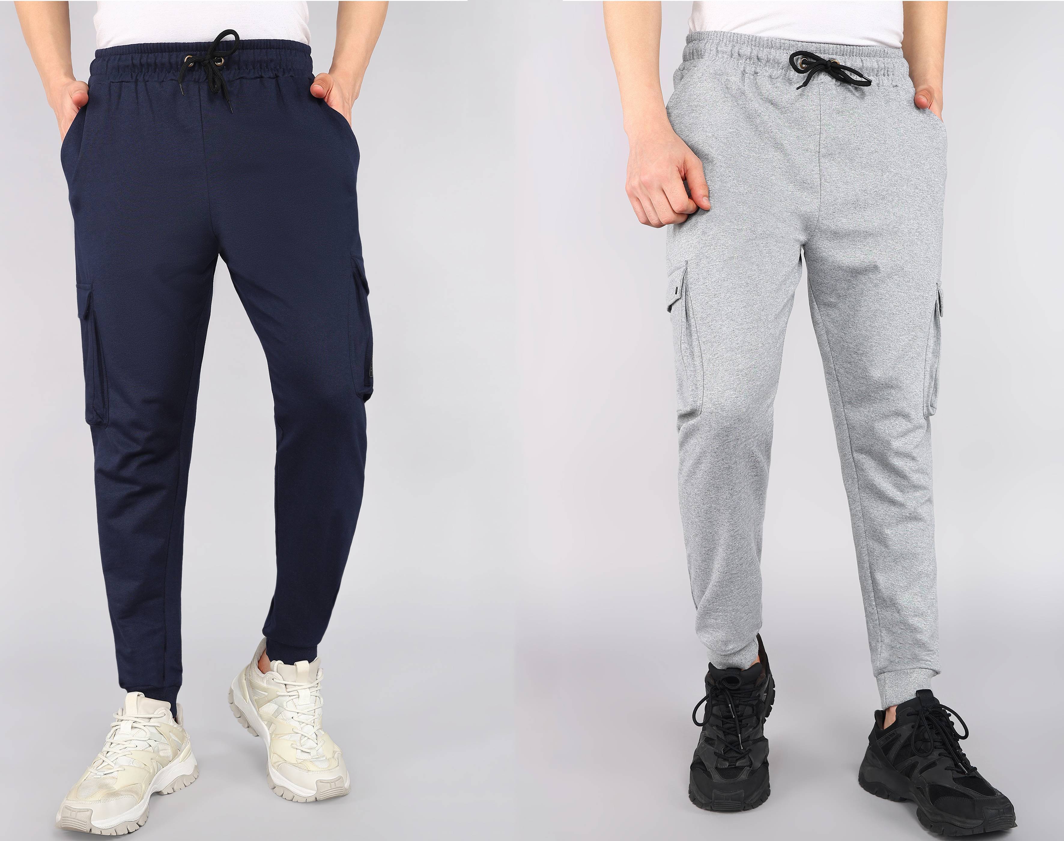 Pack of 2 Men Solid Dark Blue, Silver Track Pants