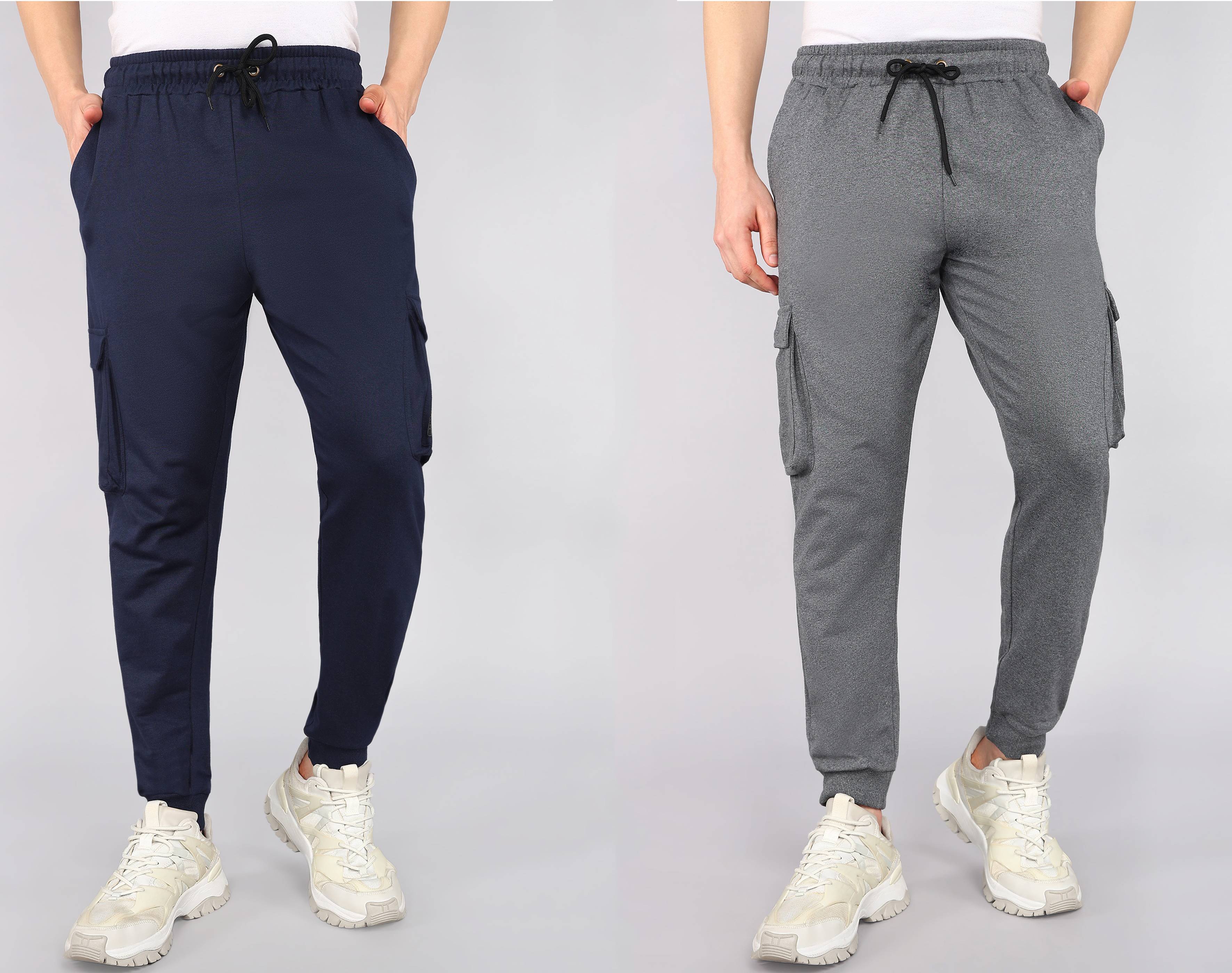 Pack of 2 Men Solid Dark Blue, Grey Track Pants