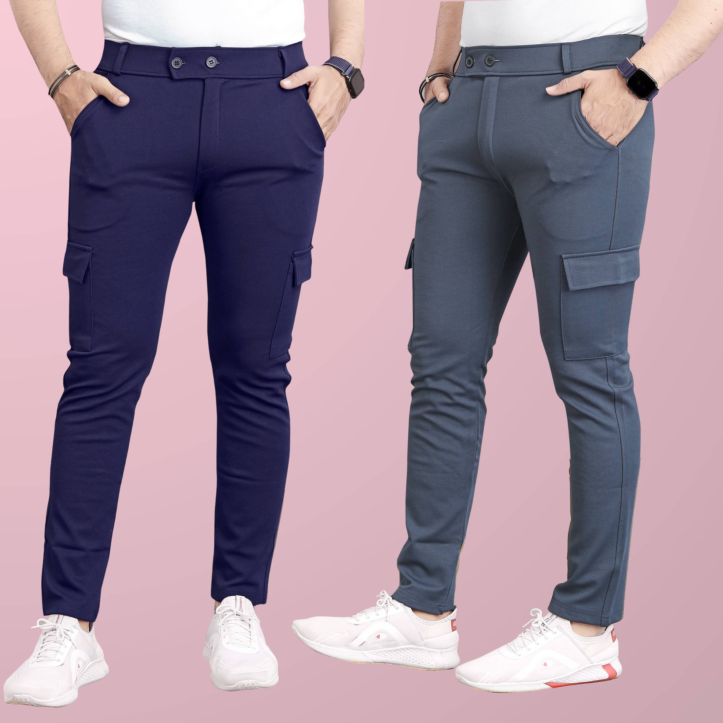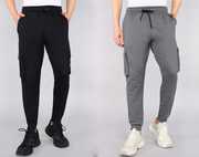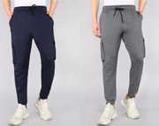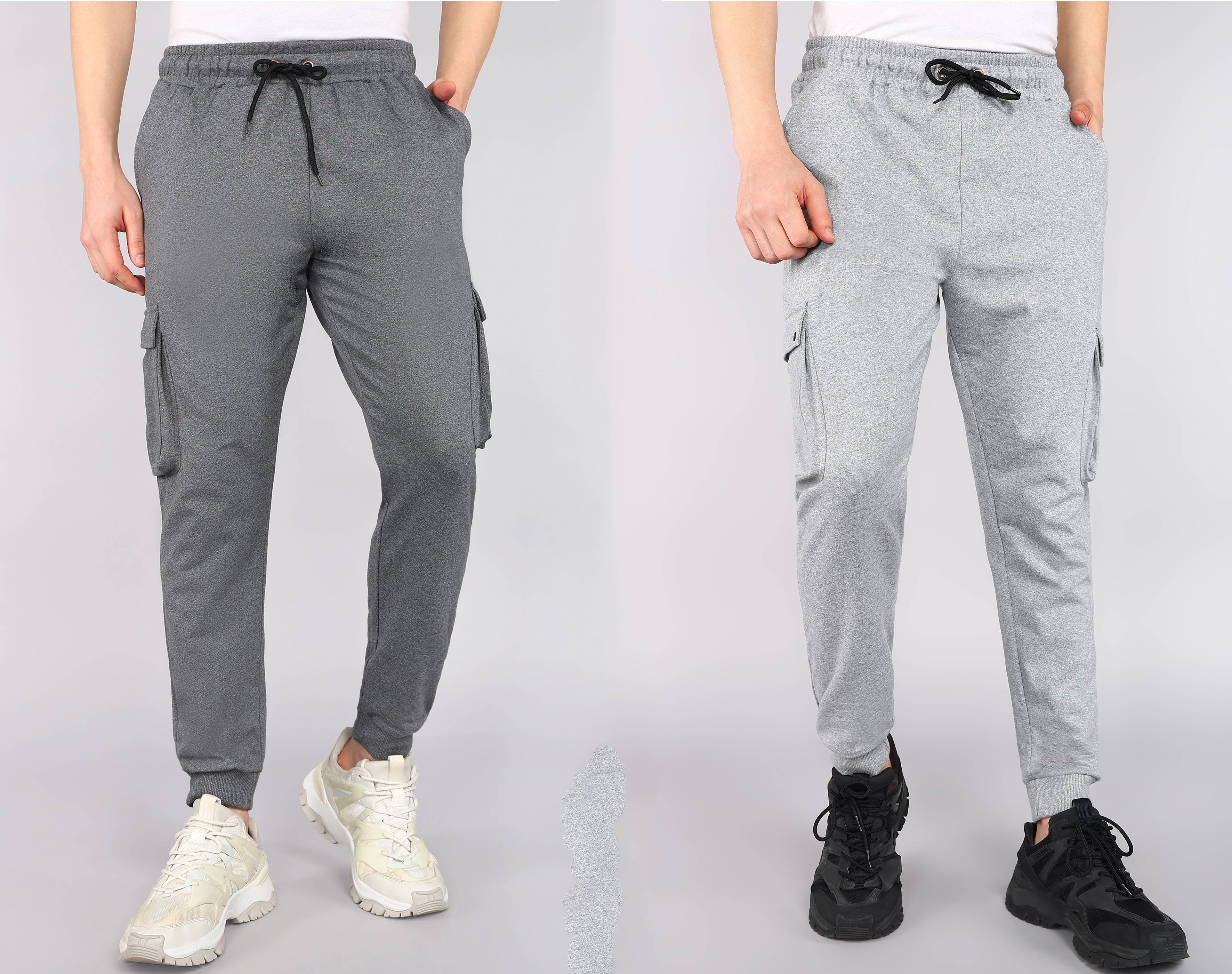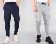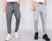 Pack of 2 Men Solid Silver, Grey Track Pants