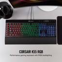 Corsair K55 Backlit RGB LED Wired USB Standard Gaming Keyboard Compatible with Desktop, Laptop, Mac (Black)