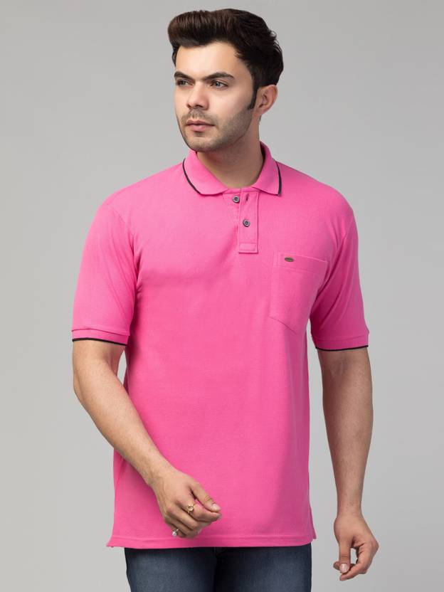 Corsair Solid Men Polo Neck Pink T-Shirt