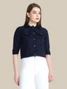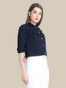 Corsica Navy Blue Front Button Fastening Collared Neckline Twil Jacket For Women