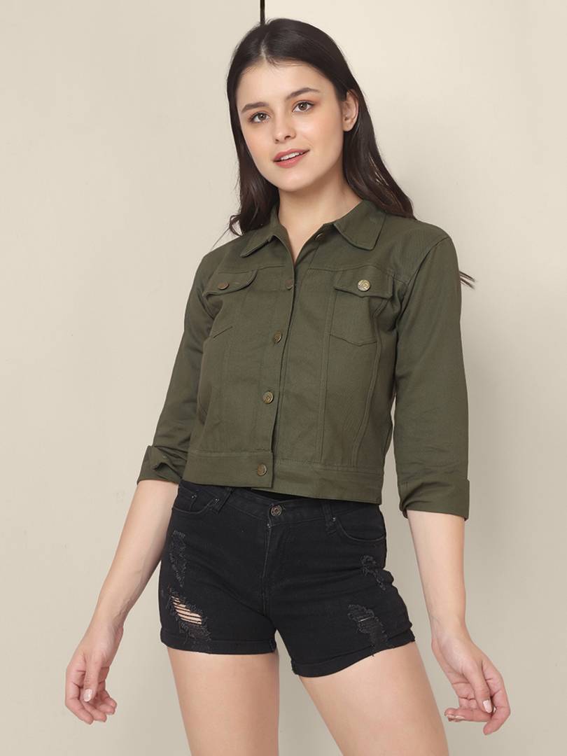 Corsica Twill Dark Green Buttoned Women Regular Jacket