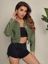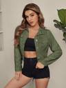 Corsica Twill Dark Green Buttoned Women Regular Jacket