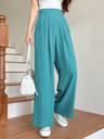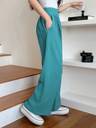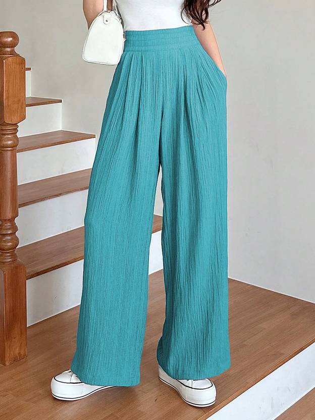 Blue woven parallel trousers::High-rise::Length: regular::Flared::Pattern: Solid::Flat-front, with no pleats design::Feature: plain::Has an 2 pockets