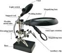 Corslet 3 In 1 Soldering Iron Stand Holder and Magnifying Glass 5 Led Auxiliary Clip Magnifier Repair- 3.5X 12X Lens Loupe 10x Stand Magnifier (Black)
