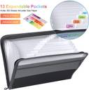 Our Unique Upgraded Zipper-Designed Pp Accordion Storage Folder Can Provide Double Security Protection for Your Files, and Has a Zipper-Designed Ruler, Pen and Other Stationery Storage Pockets. No Need to Worry About Mold or Moisture Found After Long-Term Use. It Is Very Easy to Clean, Perfect Size, Can Store All Kinds of Important Documents, Easy to Carry, Is a Unique Gift for Family, Children and Friends. Material: Durable A4 Expanding File Folder 13 Pockets with Zipper Closure Accordion Expanding File Document Organizer with Sticky Labels and Front Pocket Holder for A4 Letter Size Material Size: About 13.77” × 10.62" × 1.4” INCH, Reinforced with Side Cloth Voltage Divider: No Acid, No Pvc and Archive Quality, Safe Storage 13 Separate Pockets, Each Pocket Can Be Expanded to 1 1/8 Inches Lightweight and Portable: Not Too Big or Bulky, Easy to Carry the External "Extra" Pocket Is Ideal for Holding Pens, Highlighters, and Other Common Colored Sticky Label Is Attached for Marking, Which Can Quickly Identify the Contents of the Folder Suitable for School Offices, Project Activities, Lawyer Files, Student Work Packages, Etc.