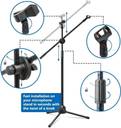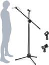 This Microphones Stand GH-201 Is a Great Mic Stand to Use at the Conference Room, Church, Stage Performance, Meeting Room, School and Other Public Place. It Can Stand Firmly at Anywhere with 3 Adjustable Legs ,Suitable for Most Microphone, You Will Enjoy and Play Your Music with Our Stand, Main material: Metal tube + plastic, Color: Black, Size: 78cm-150cm (H) The length of cross-bar: 70cm. The distance between the two brackets: 52cm Metal construction. Rubber feet. Made from quality components they are both sturdy and quickly folded for easy transportation. Package Content: 1 x Floor Stand Microphone Holder Adjustable Stand Height: 35'' to 58'' inches. Boom Length: 31 1/2''. Leg Length: 12'' inches, Features: 1 Free Microphone Clips for Each Stand, It Can Hold 2 Microphones at the Same Time. 360-Degree Rotating Folding Type Boom Arm Tripod. Sturdy and Stable Designed Stand. Adjustable Legs for Placing on Uneven Surfaces. Heavy Duty Silent Leg Tips. Adjustable Height, Boom Angle and Arm. Metal Base with Fold-Able Legs and Rubber Non-Slip Feet. Light Weight Design, Easy to Carrying Around., Package Included: 1 x Microphone stand GH-201. 2 x Microphone Clips.