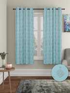 Cortina 150 cm (5 ft) Window Polyester Blackout Curtain (Pack Of 2) (Blue, Grey, Self Design)