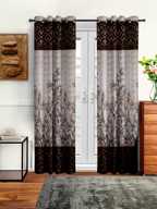Cortina 270 cm (9 ft) Long Door Polyester Semi Transparent Curtain (Pack Of 2) (Brown, Floral)