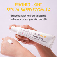 Powered by broad-spectrum UV filters and enriched with antioxidant actives, this serum-like sunscreen creates an invisible shield that prevents tanning, sunburn, and premature ageing. Its lightweight, non-comedogenic texture glides smoothly on the skin, leaving no white cast, just a clean, breathable finish that feels like nothing at all.